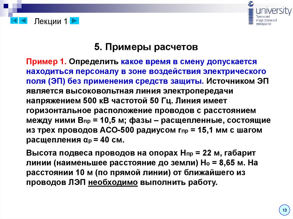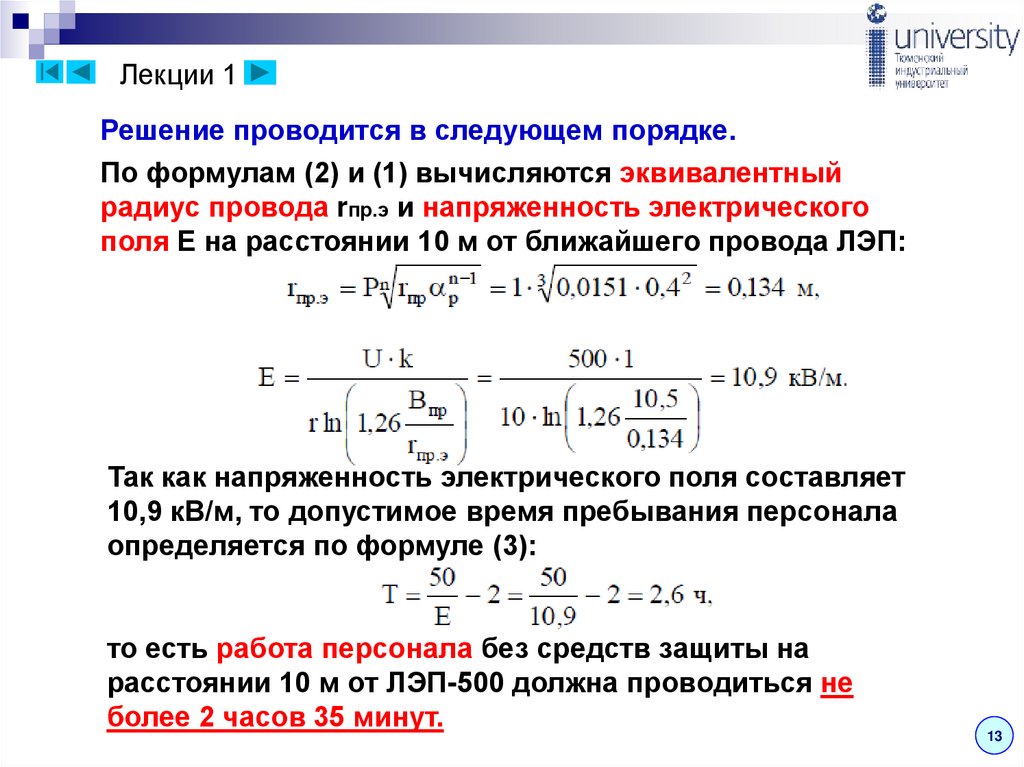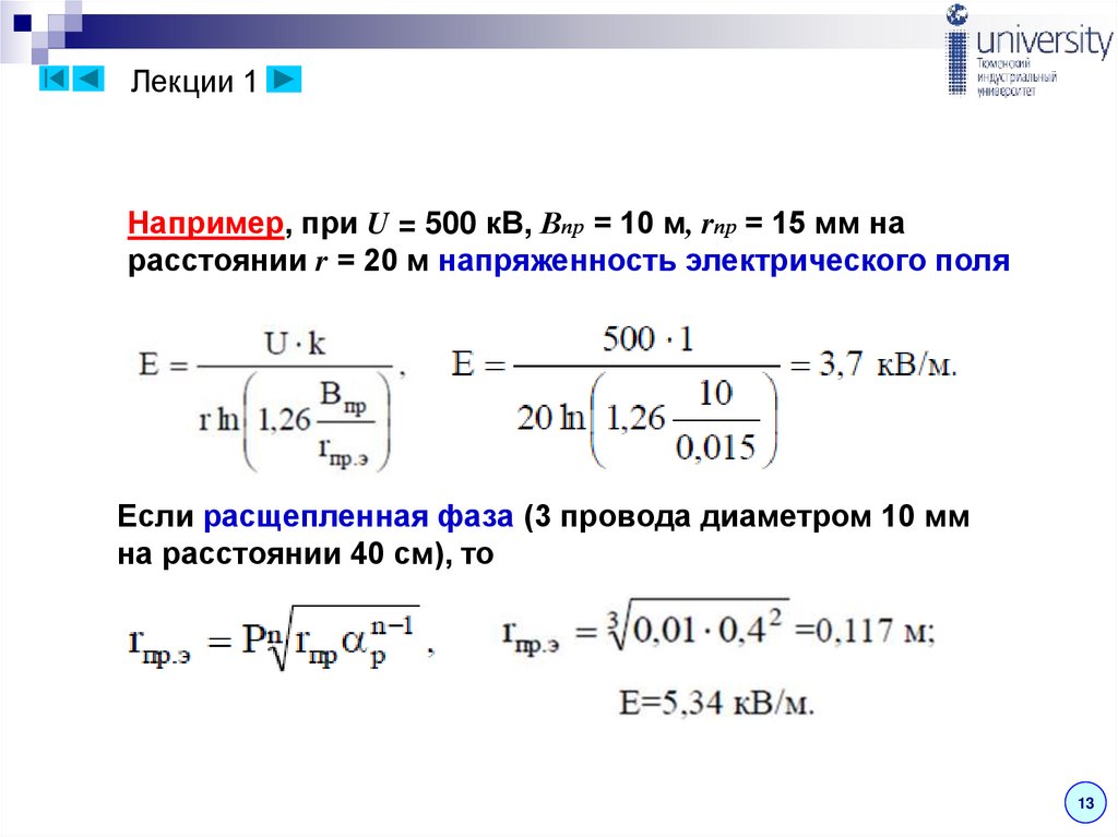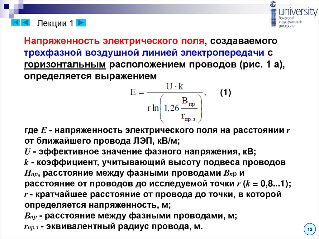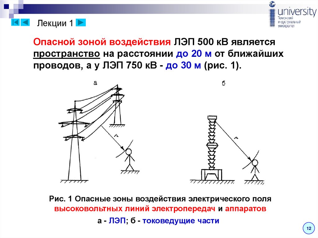 поля Е на расстоянии 10 м от ближайшего провода ЛЭП: