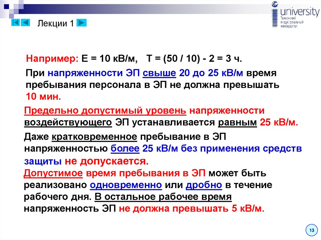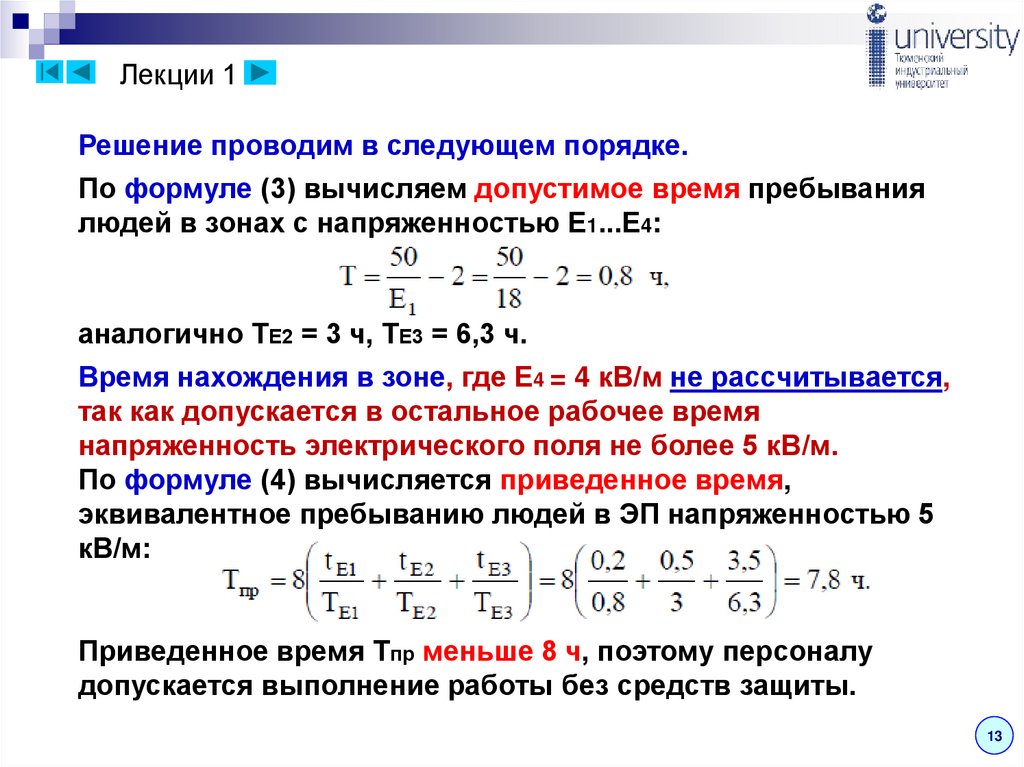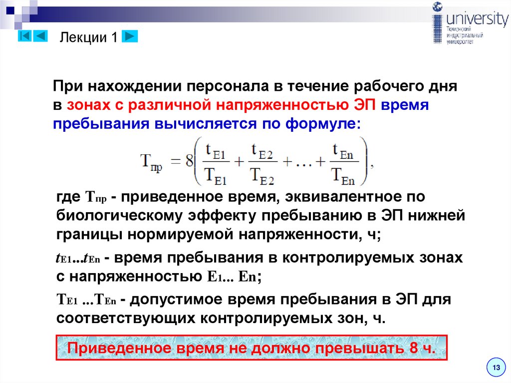 ТЕ1 ...ТЕn - допустимое время пребывания в ЭП для
