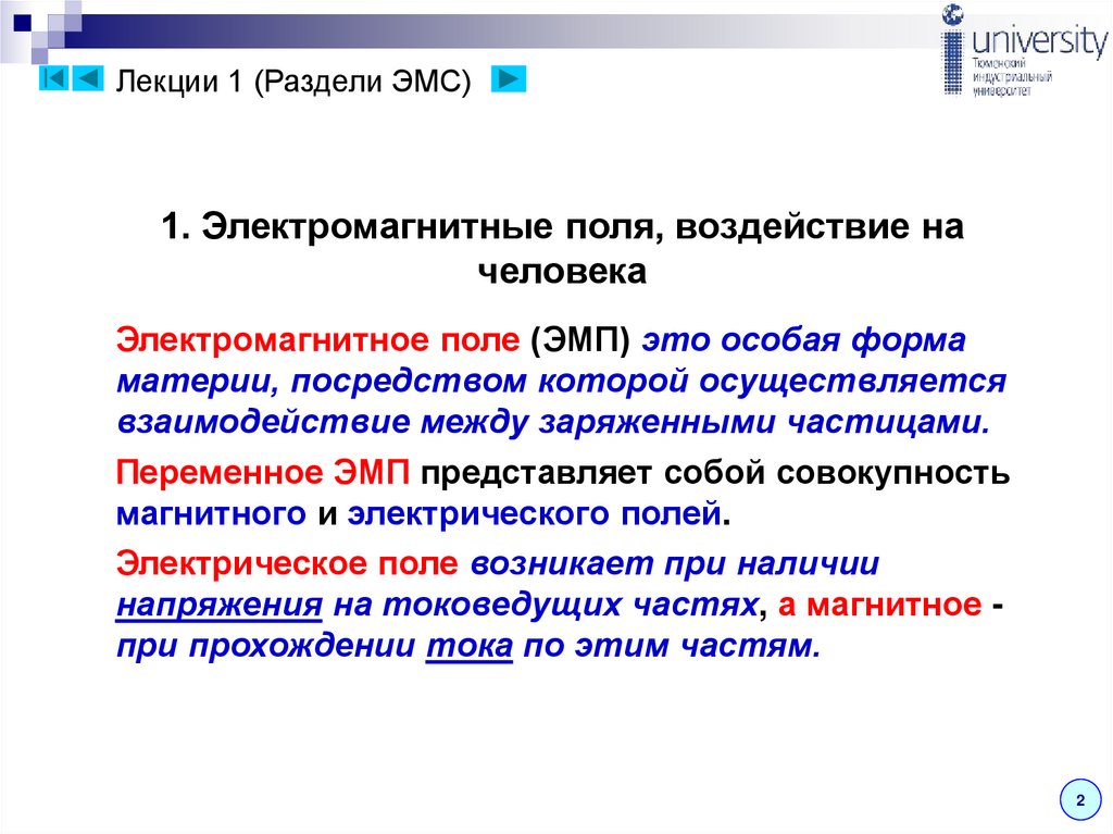 Лекции 1 (Раздели ЭМС)1. Электромагнитные поля, воздействие на