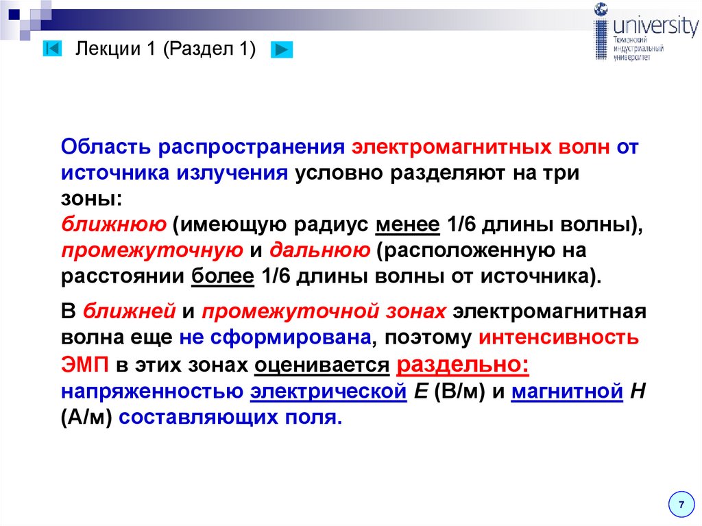 Лекции 1 (Раздел 1)Область распространения электромагнитных волн от