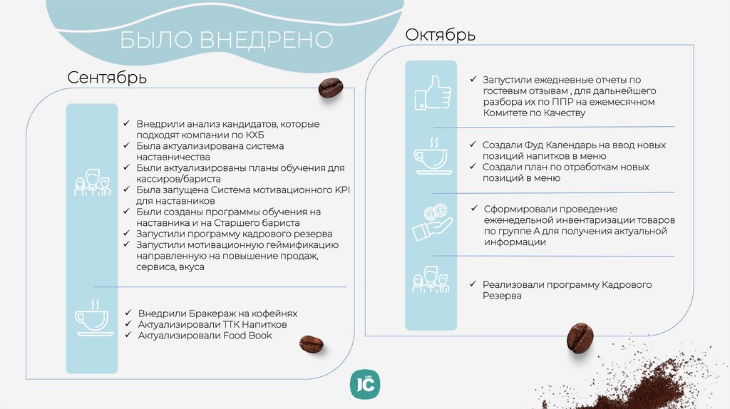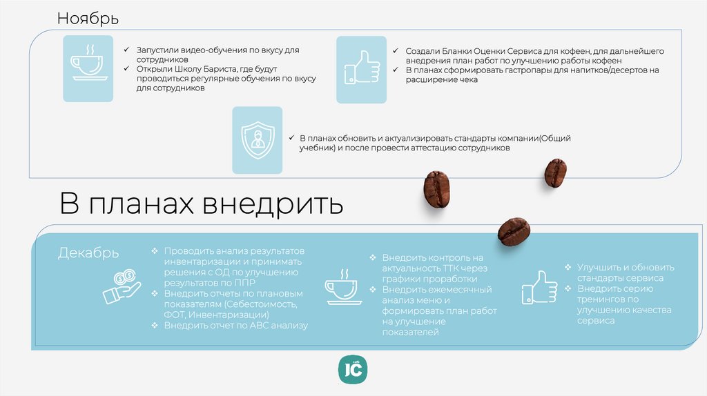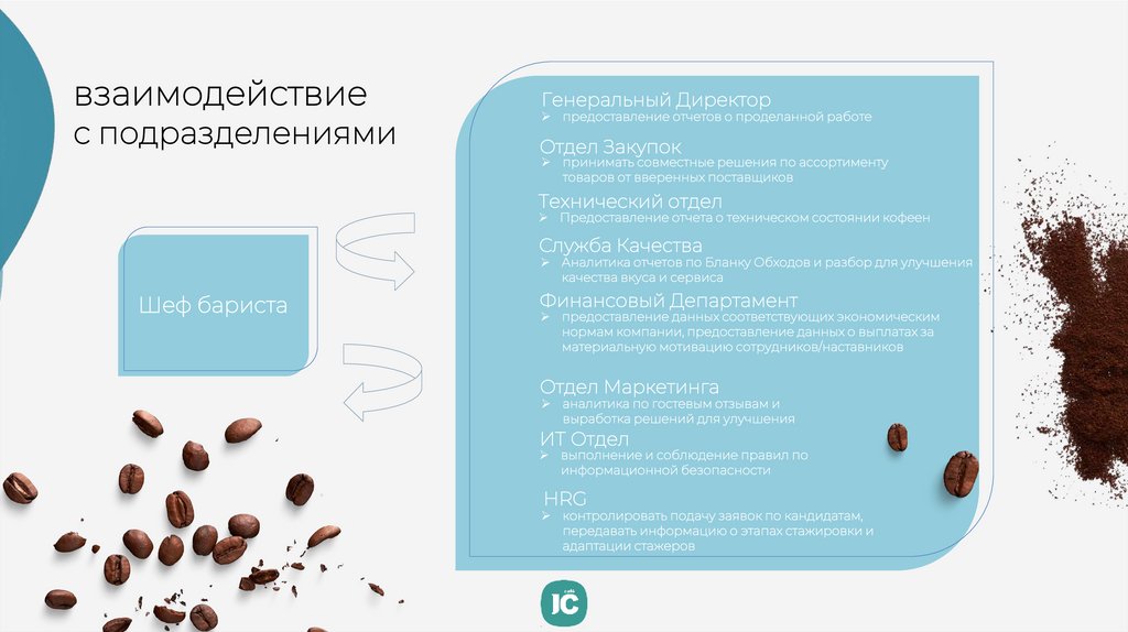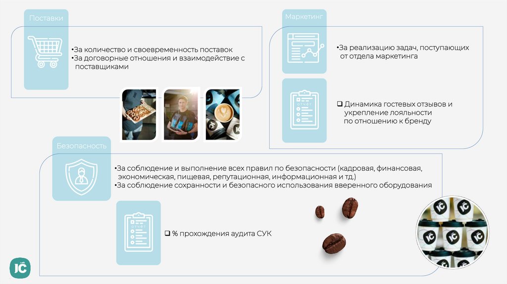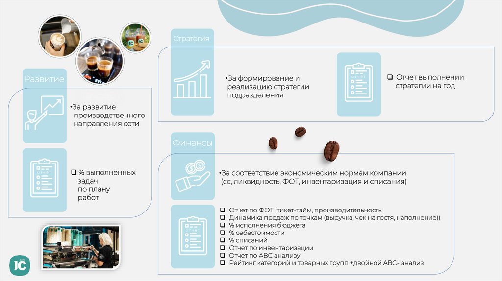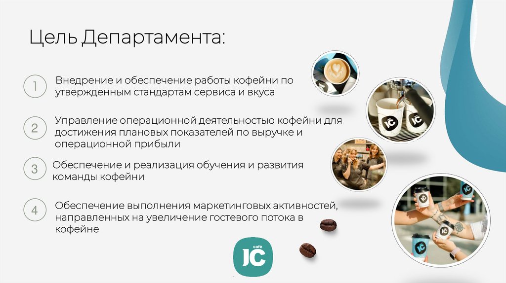 Цель Департамента:Внедрение и обеспечение работы кофейни по