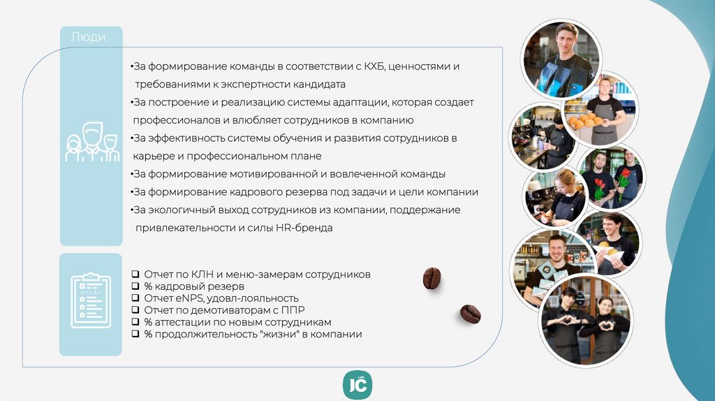 Люди•За формирование команды в соответствии с КХБ, ценностями и