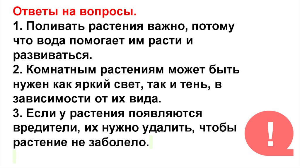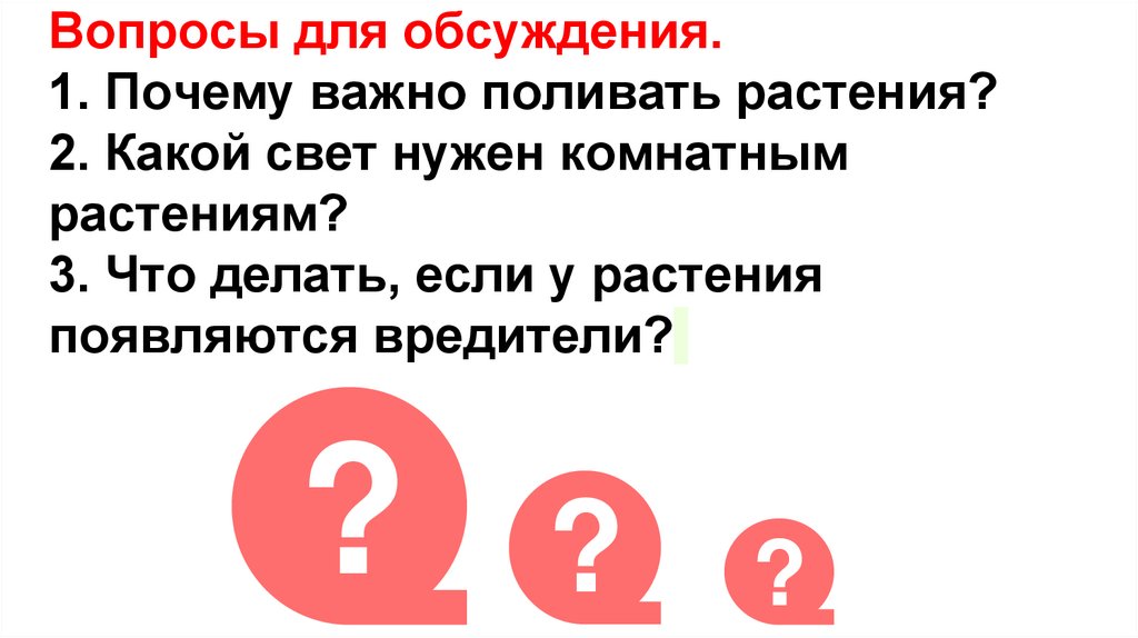 Вопросы для обсуждения.1. Почему важно поливать растения?