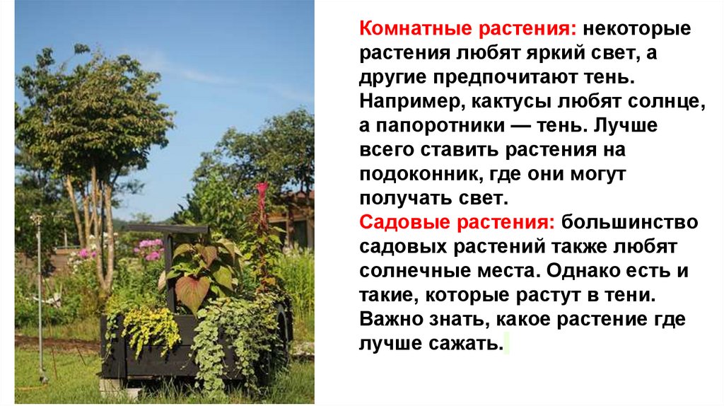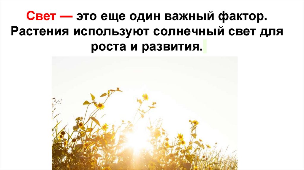 Свет — это еще один важный фактор.Растения используют солнечный свет для