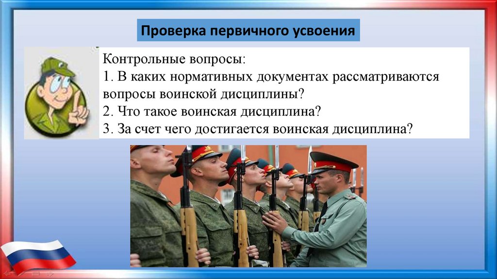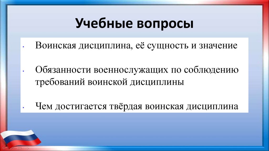 Учебные вопросыВоинская дисциплина, её сущность и значение
