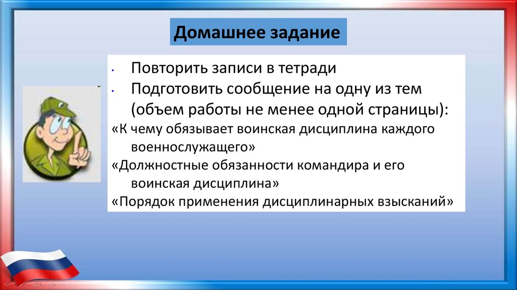 Федерации, законы Российской Федерации и требования общевоинских уставов;