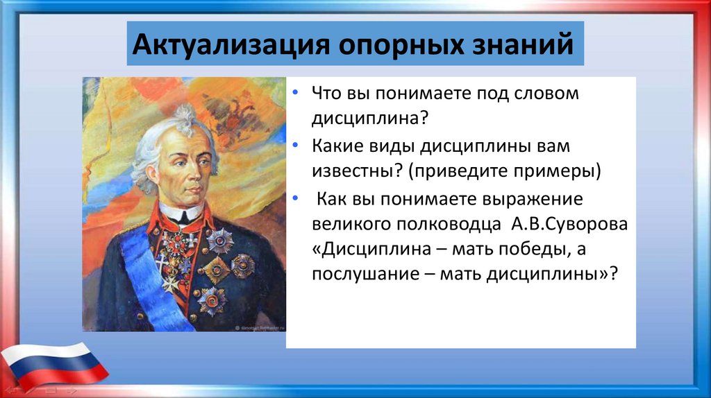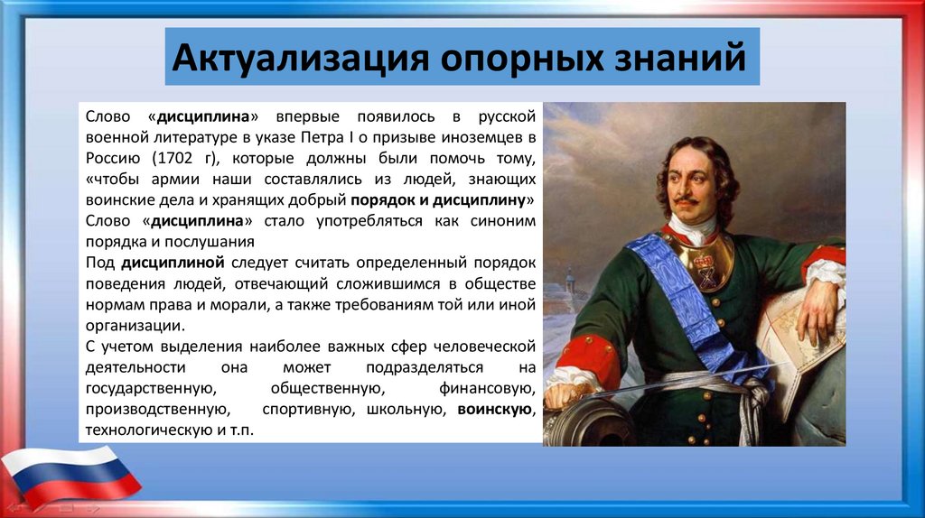 Актуализация опорных знанийСлово «дисциплина» впервые появилось в русской