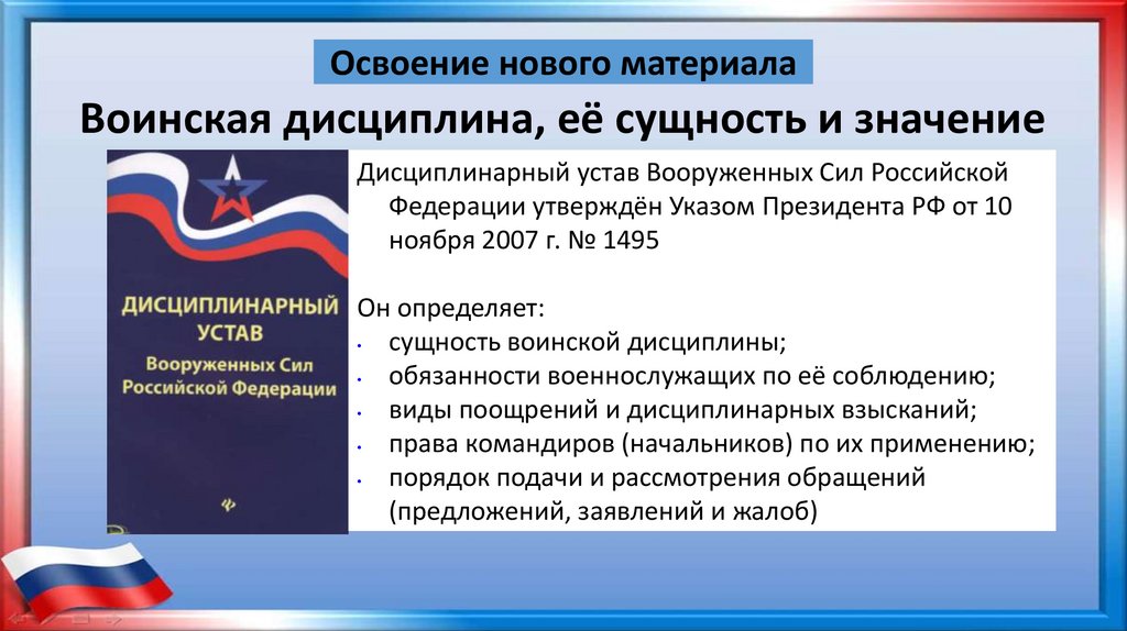 Освоение нового материалаВоинская дисциплина, её сущность и значение