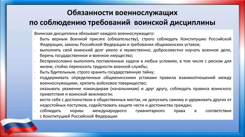 Обязанности военнослужащихпо соблюдению требований воинской дисциплины