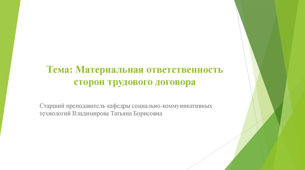 1. Понятие материальной ответственности и ее виды2. Ответственность работодателя за ущерб, причиненный