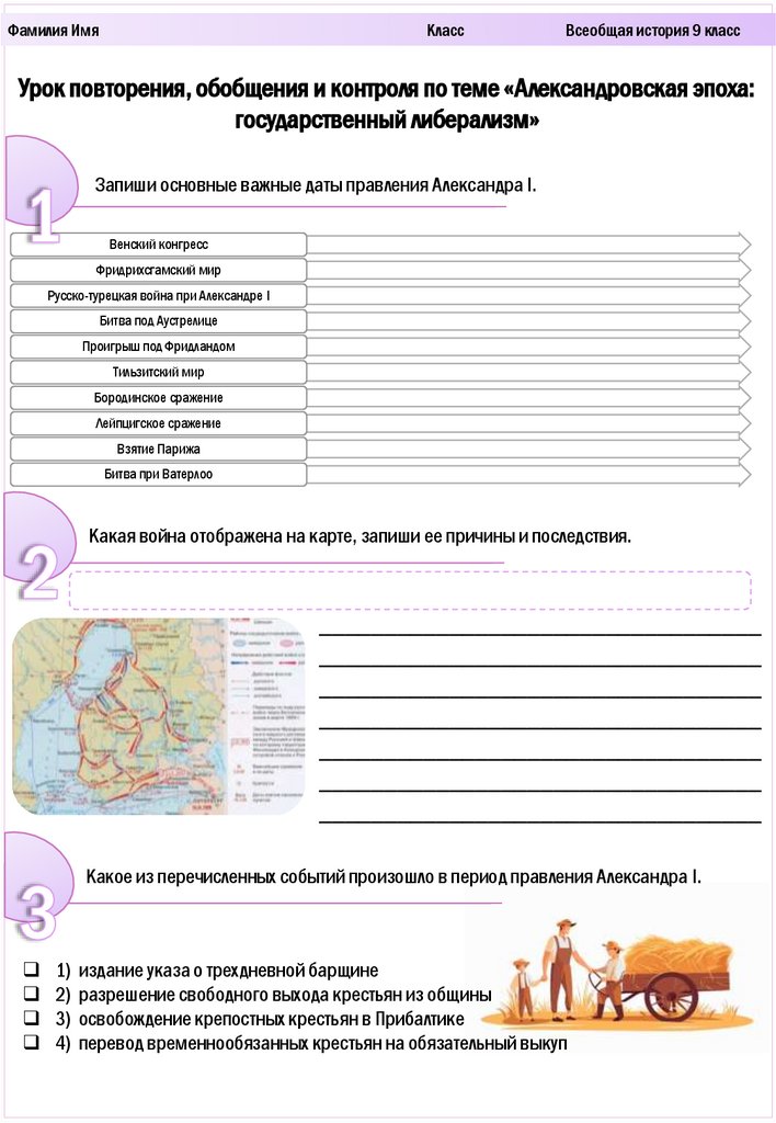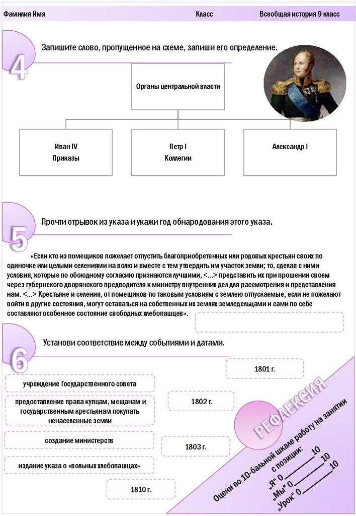 Урок повторения, обобщения и контроля по теме «Александровская эпоха: