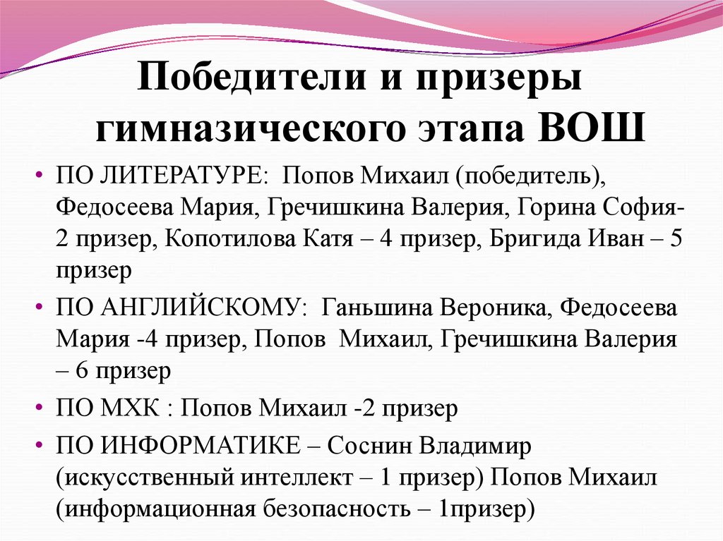 Победители и призерыгимназического этапа ВОШ