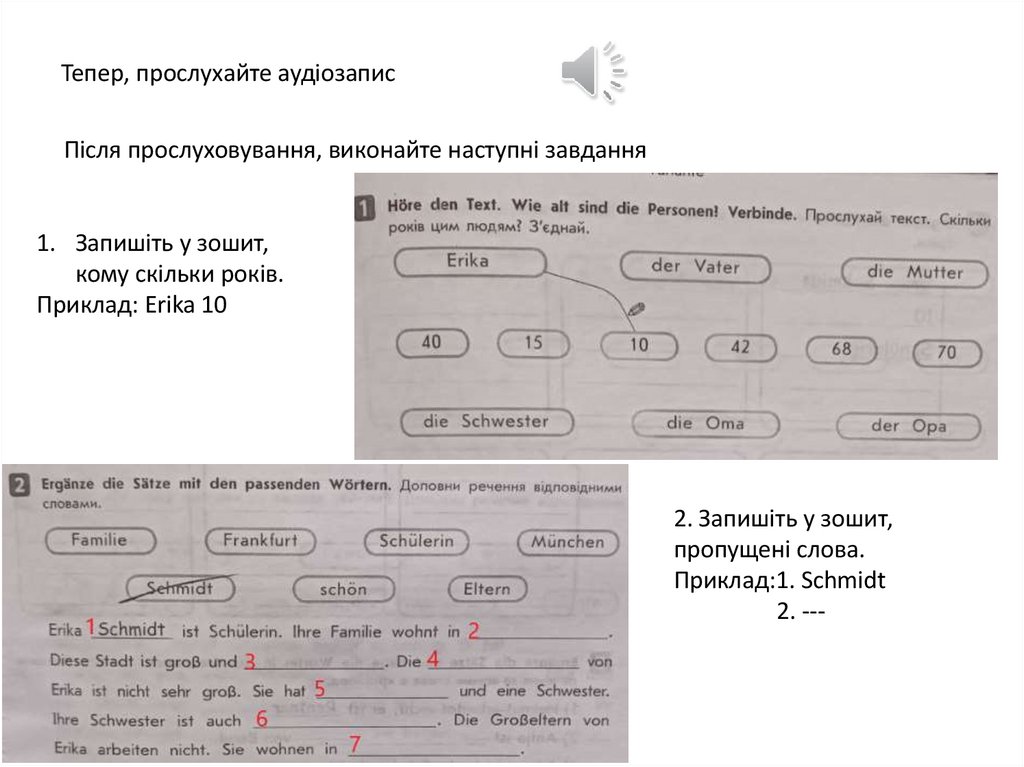 Тепер, прослухайте аудіозаписПісля прослуховування, виконайте наступні завдання