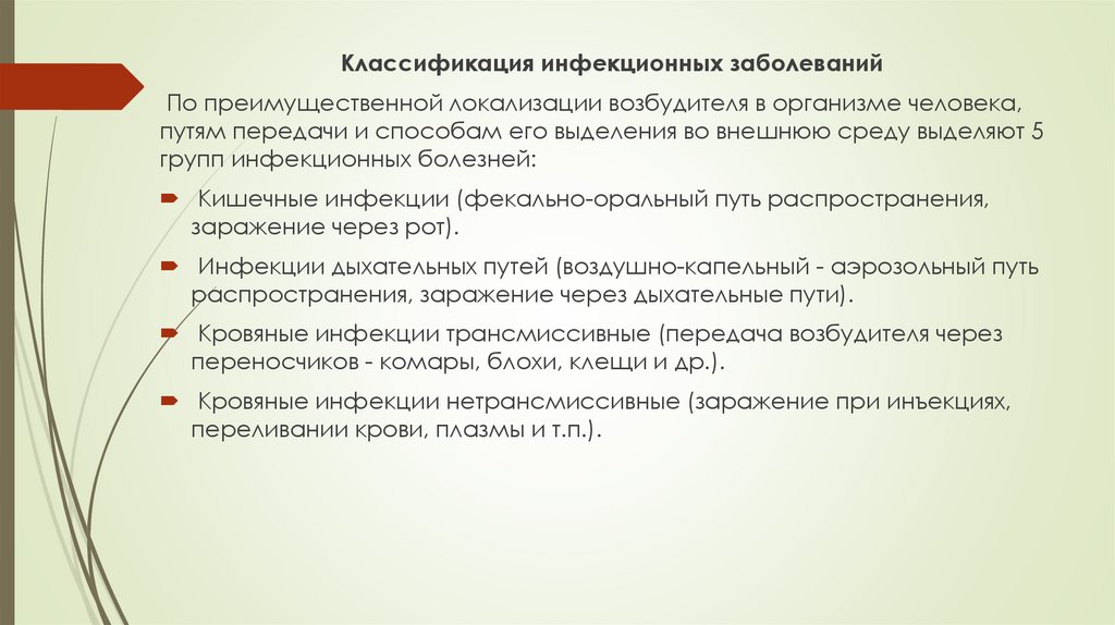 Классификация инфекционных заболеванийПо преимущественной локализации возбудителя в организме человека,