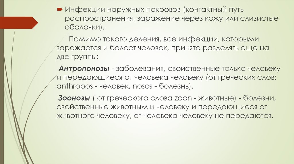 Инфекции наружных покровов (контактный путьраспространения, заражение через кожу или слизистые
