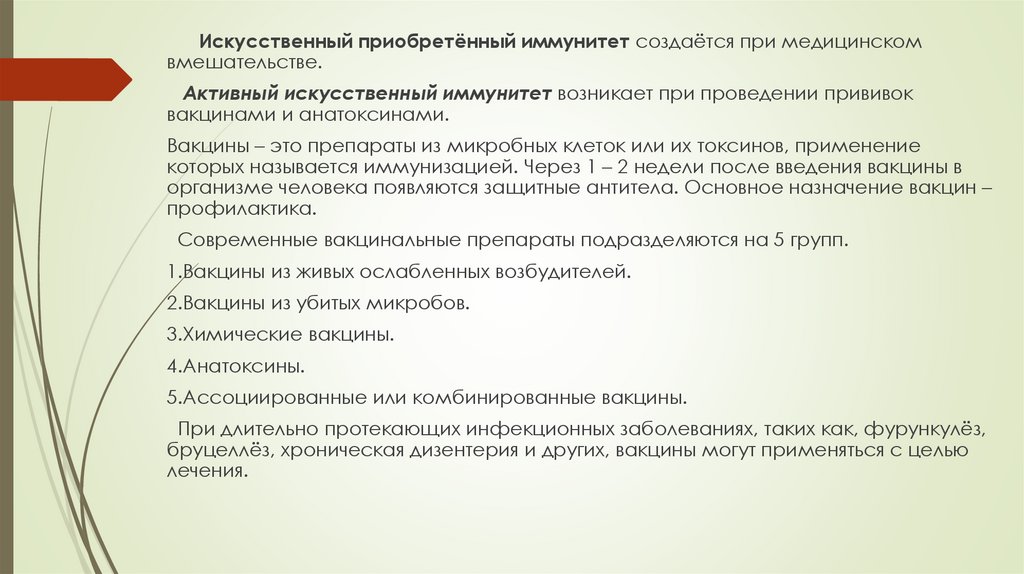 Искусственный приобретённый иммунитет создаётся при медицинскомвмешательстве.