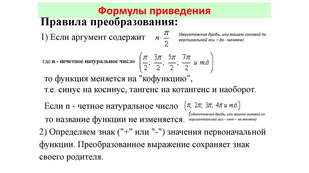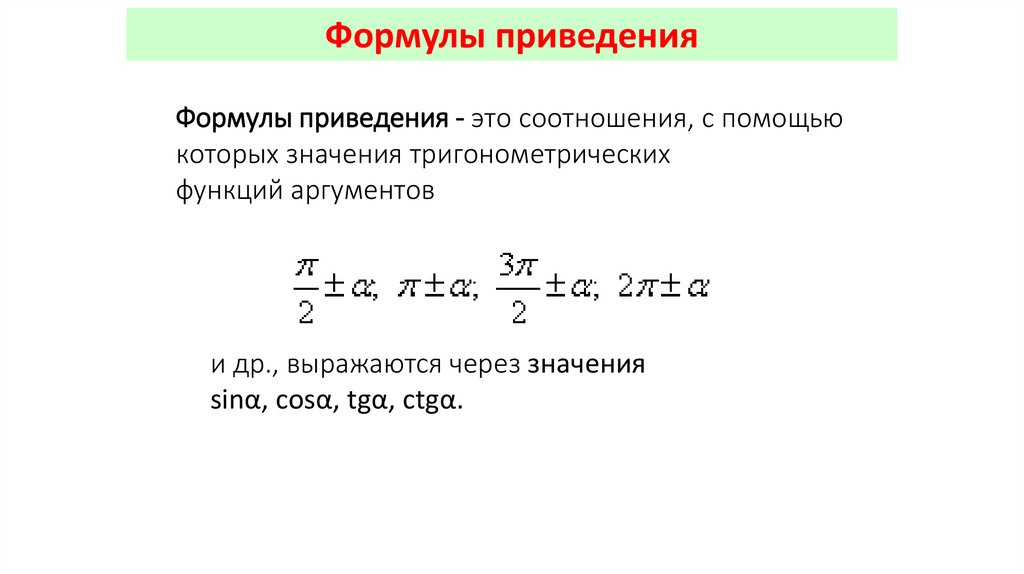 Формулы приведенияФормулы приведения - это соотношения, с помощью
