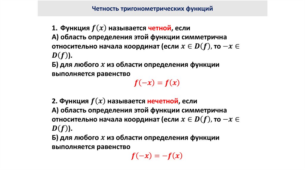 1. Чётность, нечётность, периодичность тригонометрических функций.