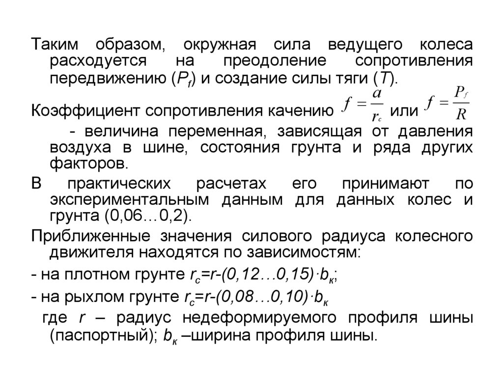 сопротивления. Сила, развиваемая гусеничным или колесным