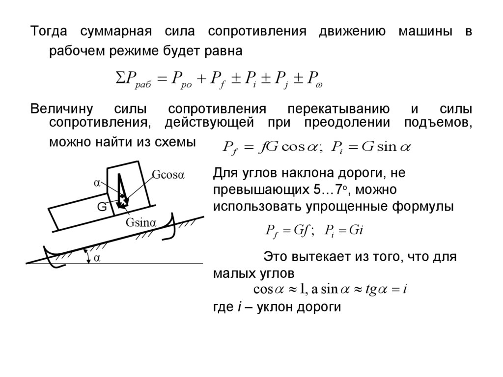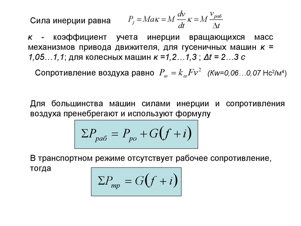 Тогда суммарная сила сопротивления движению машины врабочем режиме будет равна