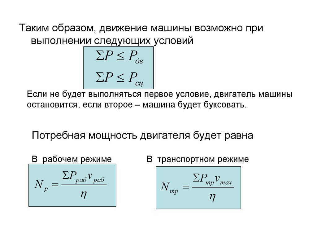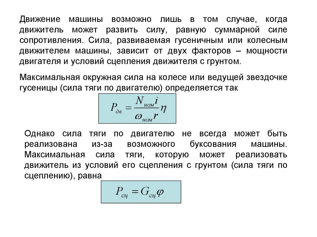 Движение машины возможно лишь в том случае, когдадвижитель может развить силу, равную суммарной силе