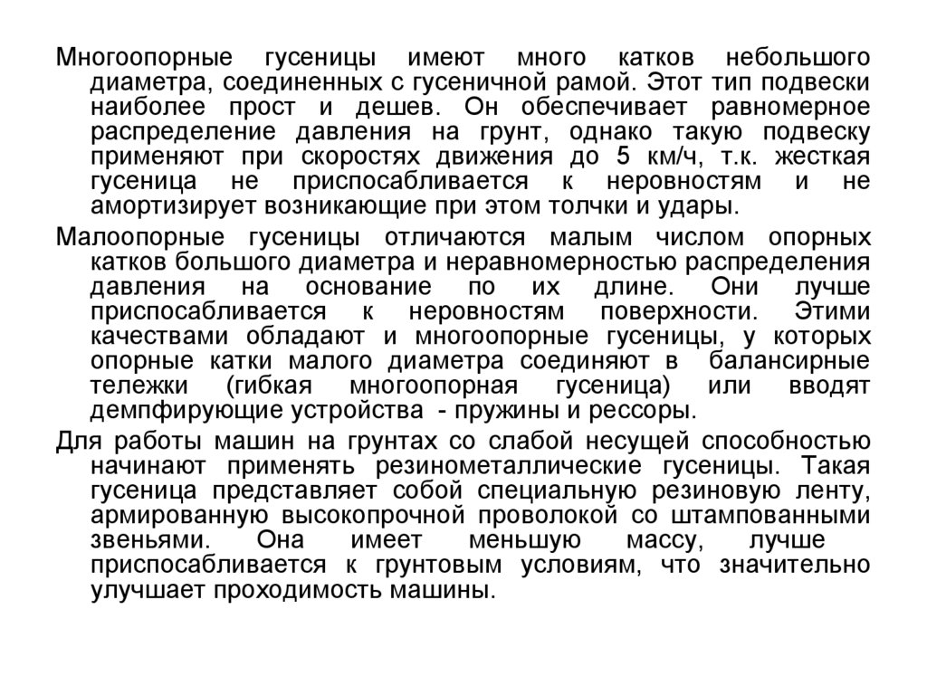 Многоопорные гусеницы имеют много катков небольшогодиаметра, соединенных с гусеничной рамой. Этот тип подвески
