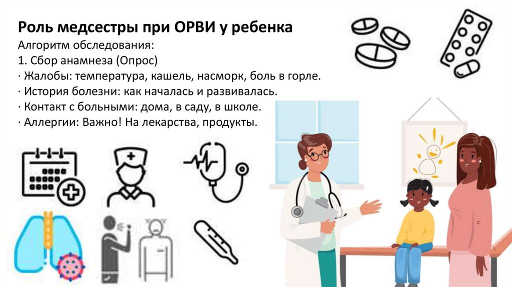 Роль медсестры при ОРВИ у ребенкаАлгоритм обследования: