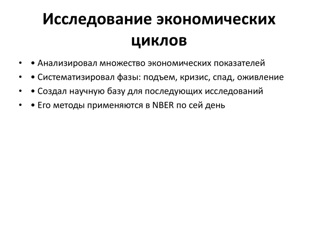 Работа в NBER• • Митчелл — один из создателей Национального бюро