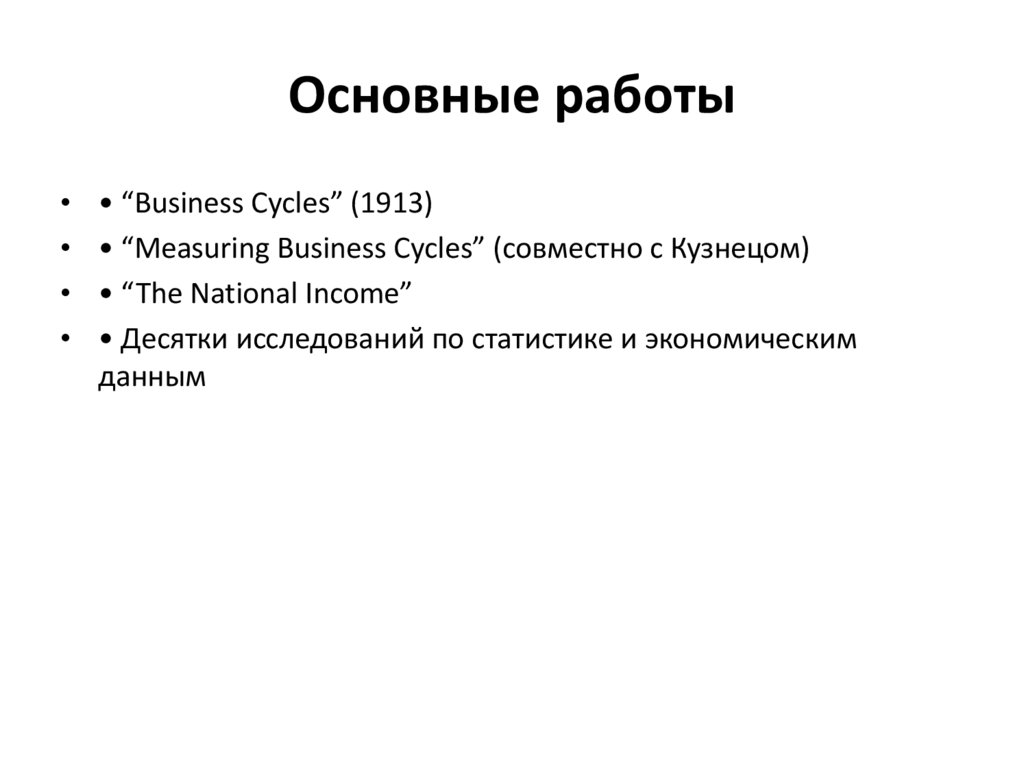• “Measuring Business Cycles” (совместно с Кузнецом)