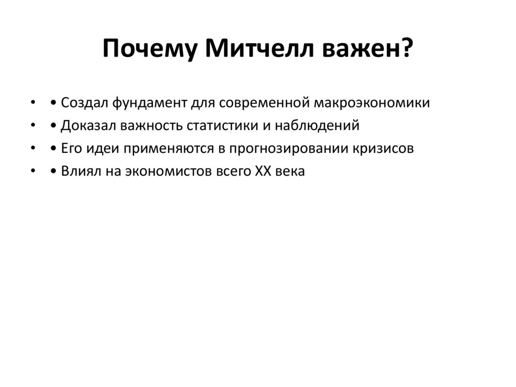 Почему Митчелл важен?• Создал фундамент для современной макроэкономики
