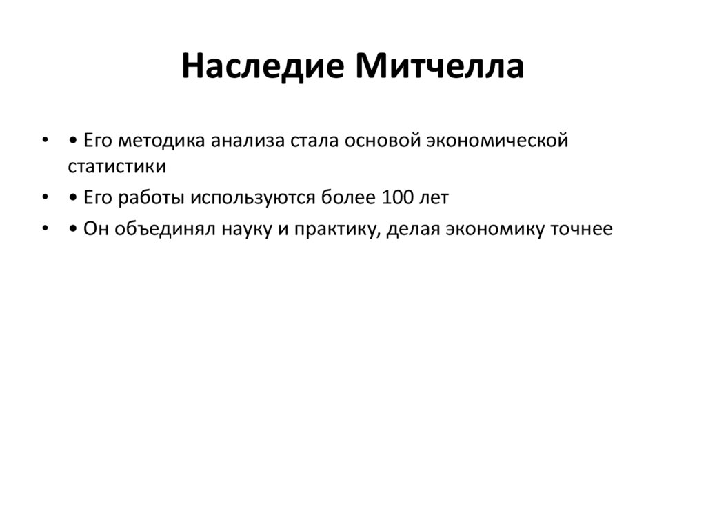 Наследие Митчелла• • Его методика анализа стала основой экономической
