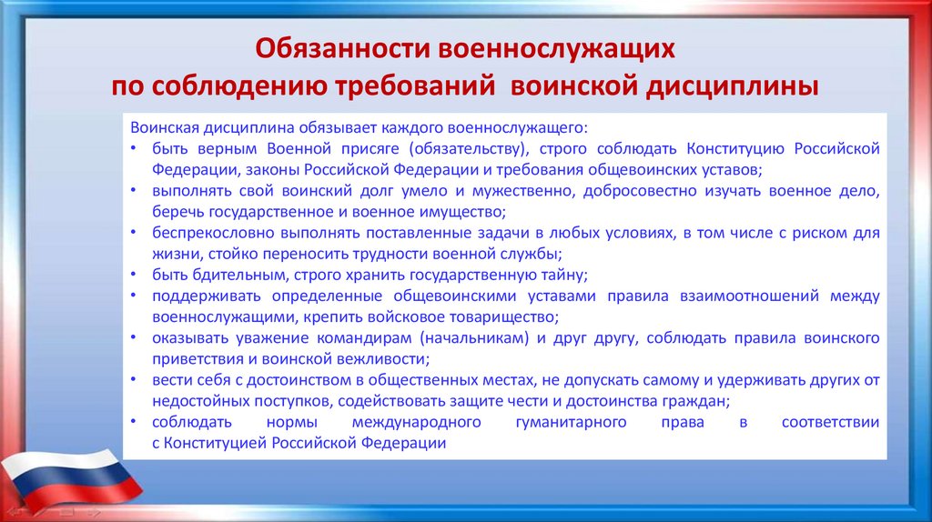 Обязанности военнослужащихпо соблюдению требований воинской дисциплины