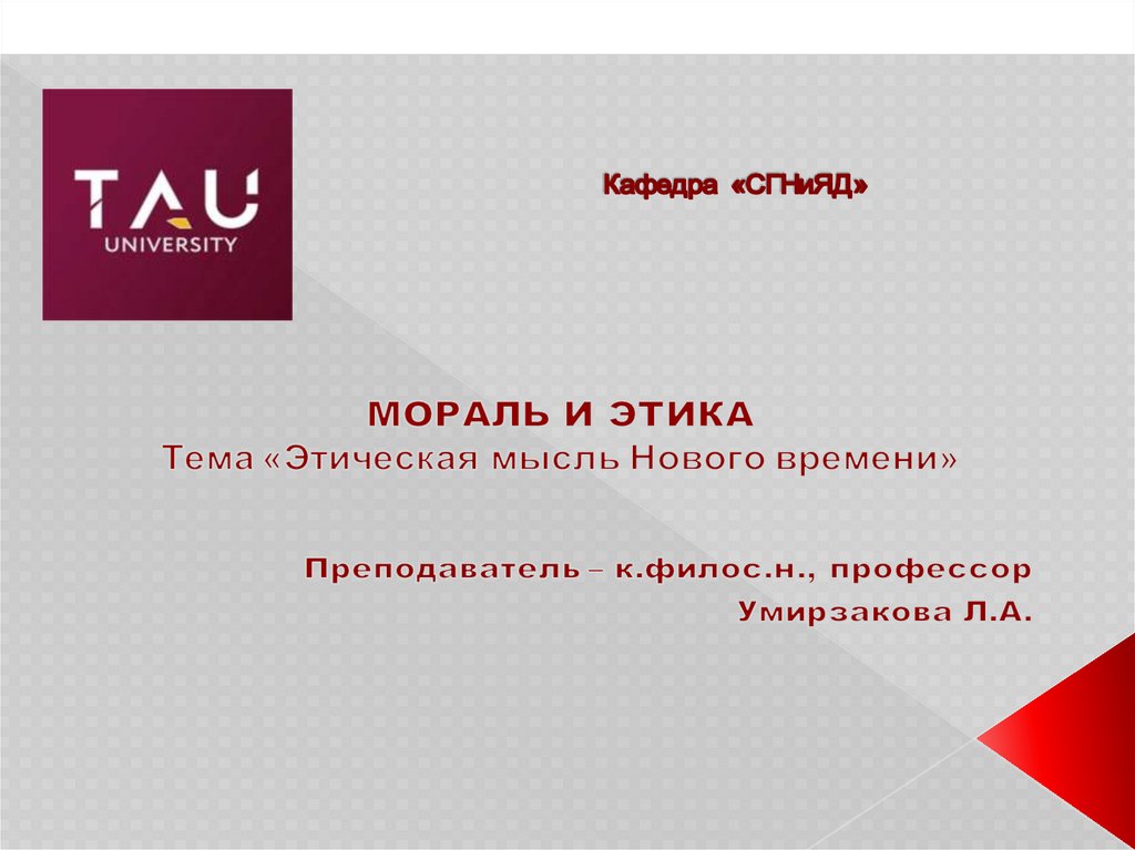 ЛЕКЦИЯ 6 Этическая мысль Нового Времени и Просвещения