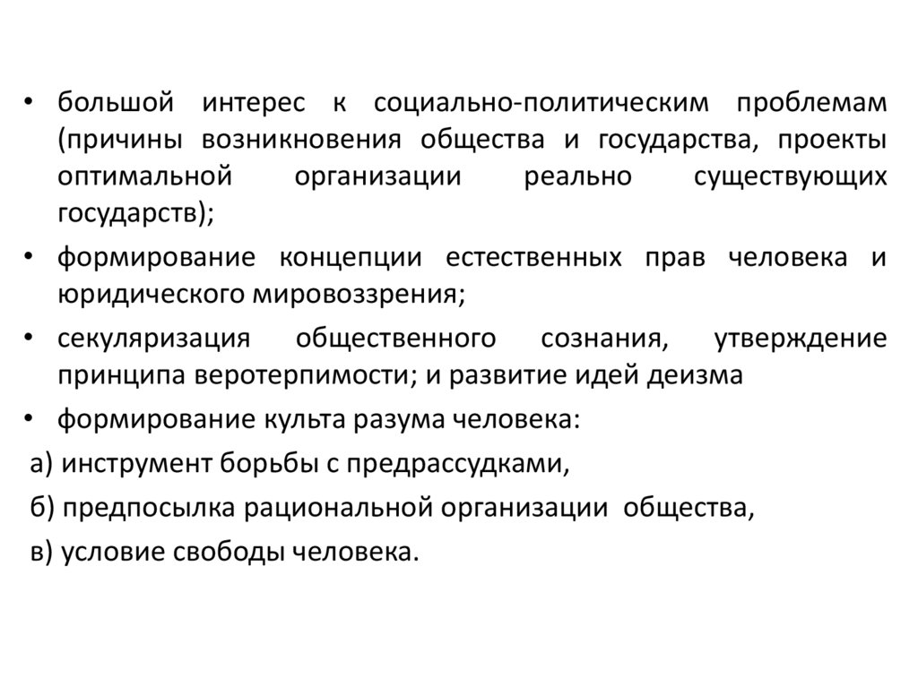 • большой интерес к социально-политическим проблемам(причины возникновения общества и государства, проекты