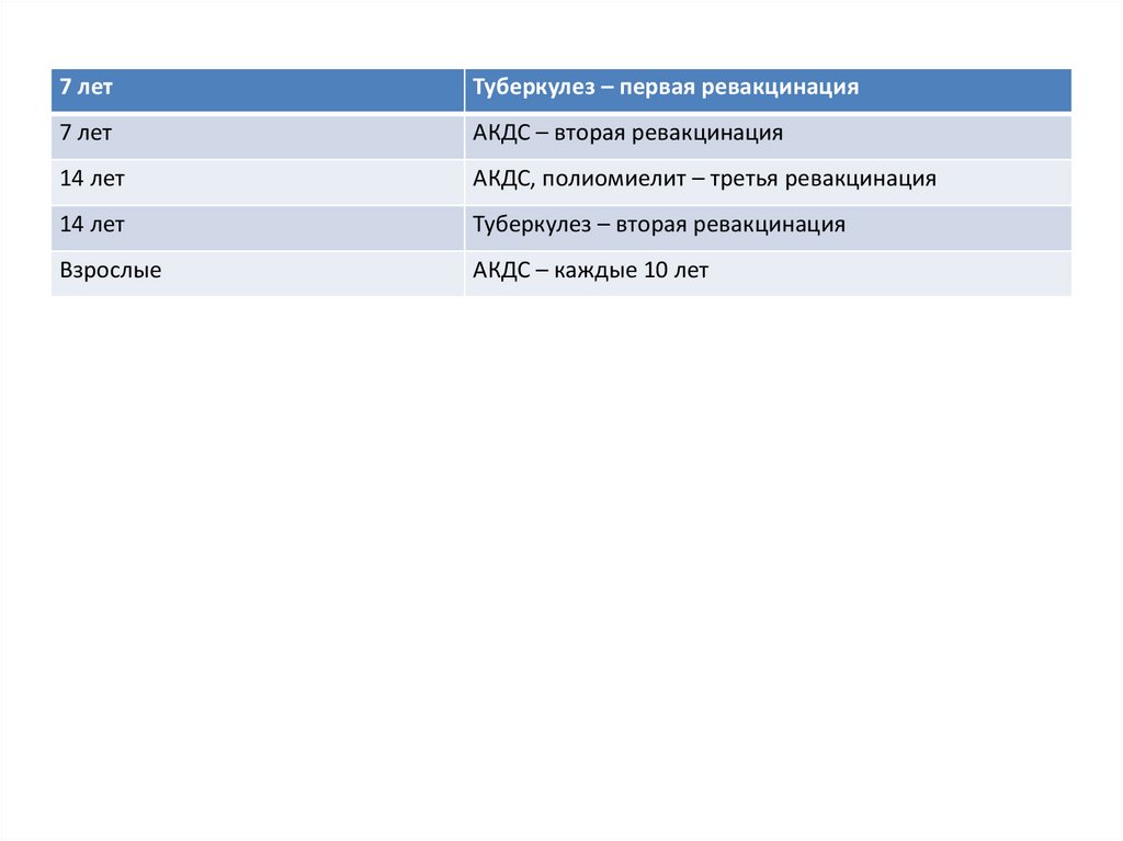 7 летТуберкулез – первая ревакцинация