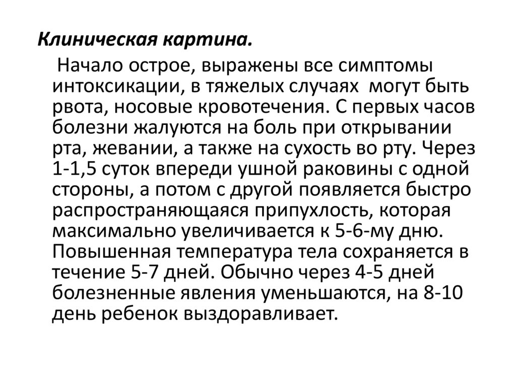 Эпидемический паротит – острое вирусноезаболевание, характеризующееся общей