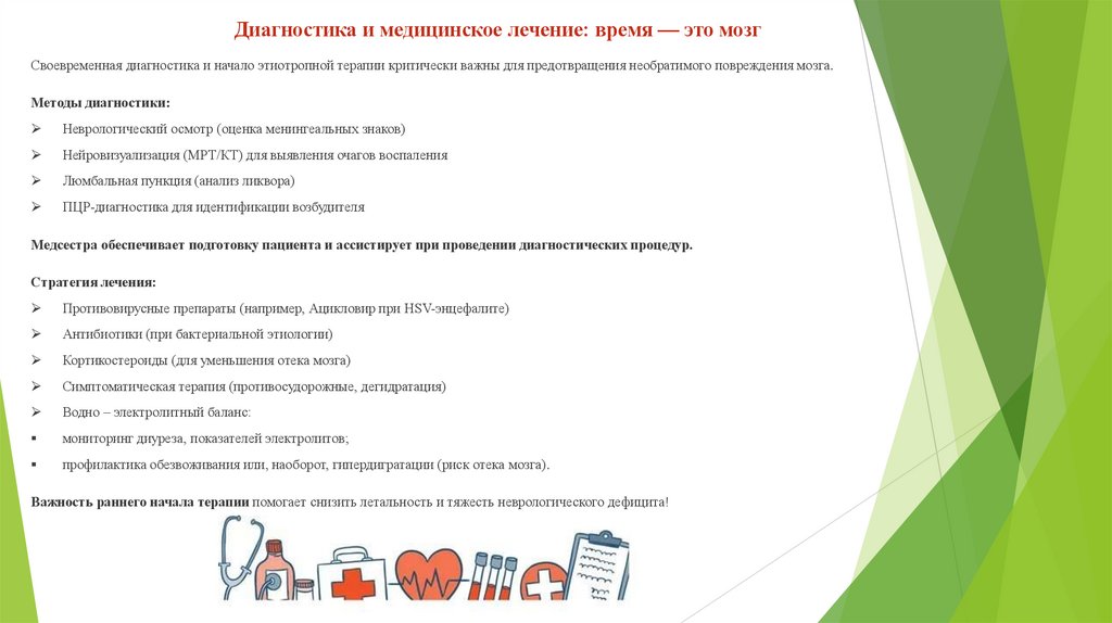 Важность раннего начала терапии помогает снизить летальность и тяжесть неврологического дефицита!