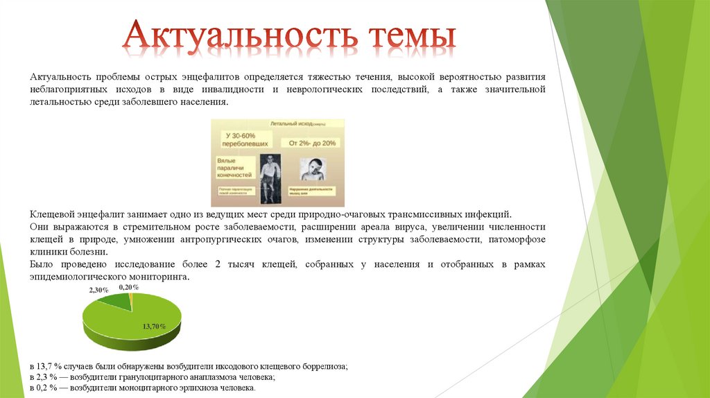 Актуальность проблемы острых энцефалитов определяется тяжестью течения, высокой вероятностью развитиянеблагоприятных исходов в виде инвалидности и неврологических последствий, а также значительной