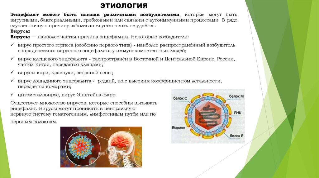 ЭТИОЛОГИЯЭнцефалит может быть вызван различными возбудителями, которые могут быть