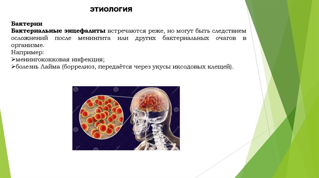 Бактериальные энцефалиты встречаются реже, но могут быть следствием