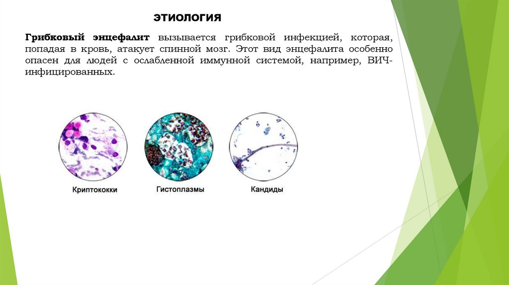 ЭТИОЛОГИЯГрибковый энцефалит вызывается грибковой инфекцией, которая,