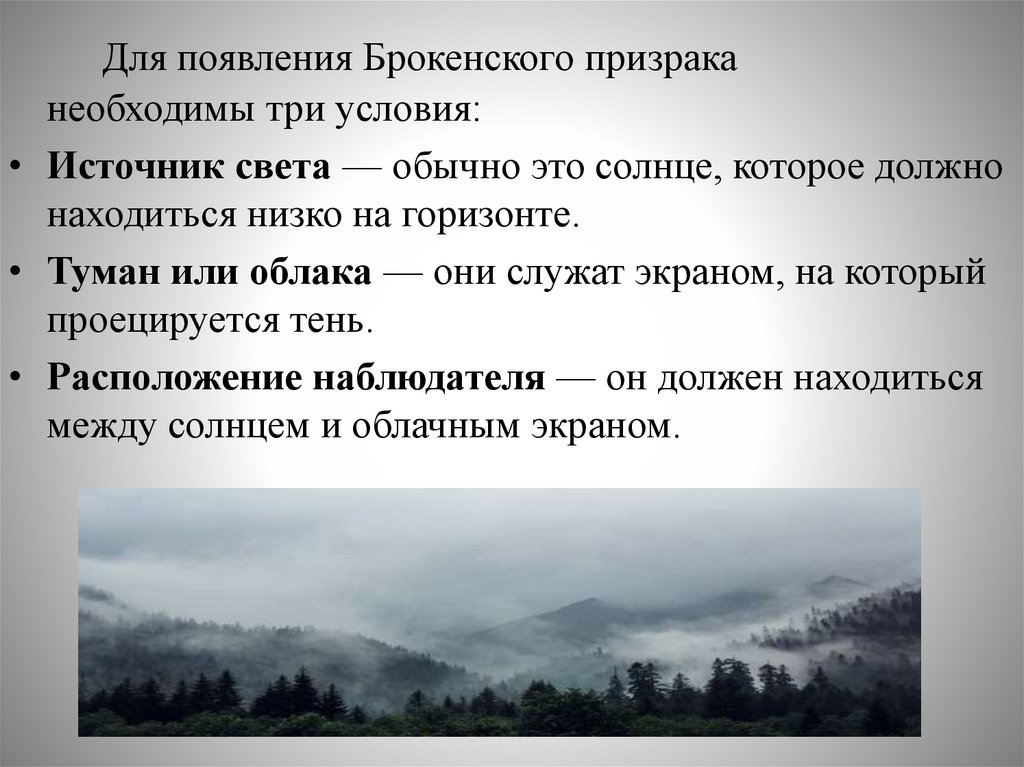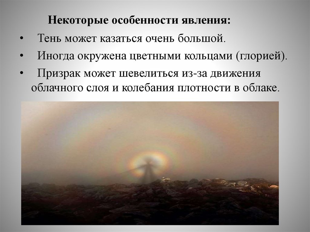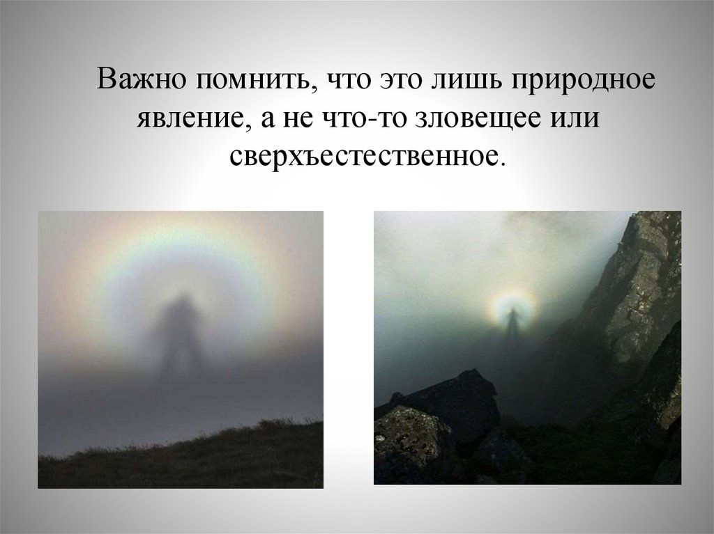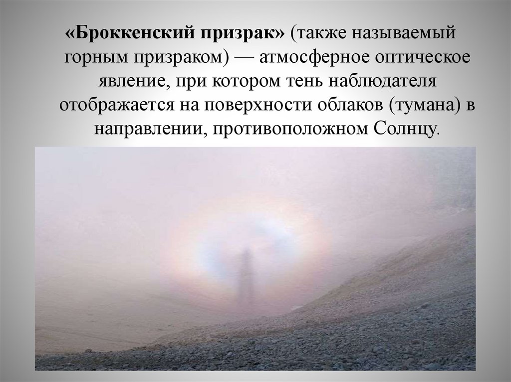 «Броккенский призрак» (также называемыйгорным призраком) — атмосферное оптическое