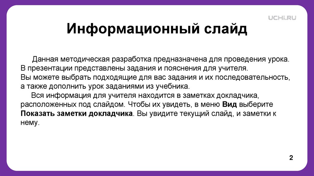 Вся информация для учителя находится в заметках докладчика,
