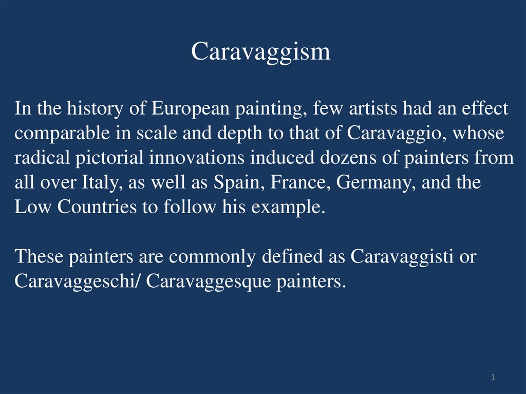 Caravaggio ’s manner was taken up by painters with very different background, traditions, and
