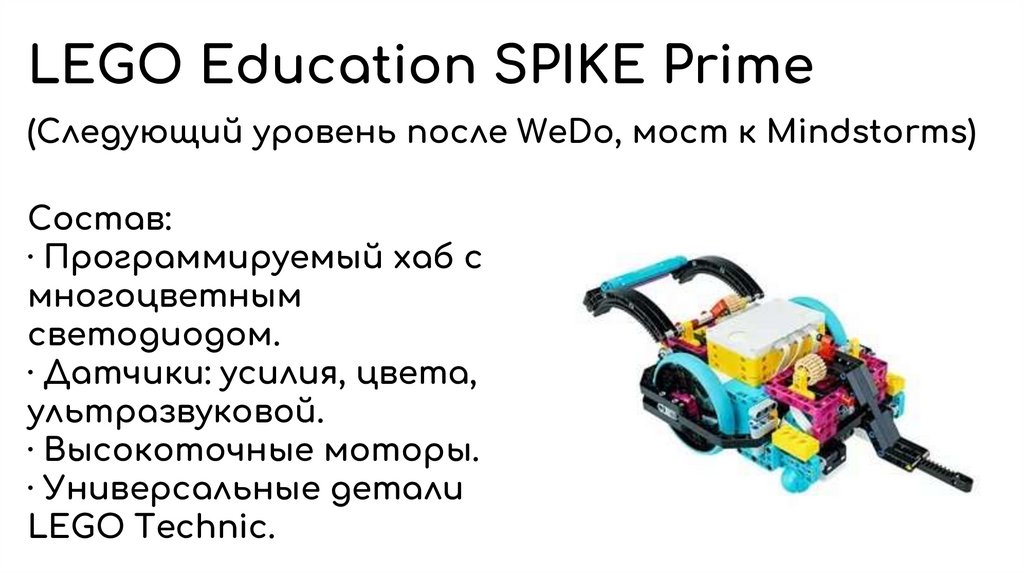 LEGO Education SPIKE Prime(Следующий уровень после WeDo, мост к Mindstorms)