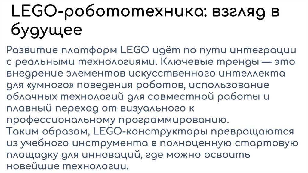 LEGO-робототехника: взгляд вбудущее
