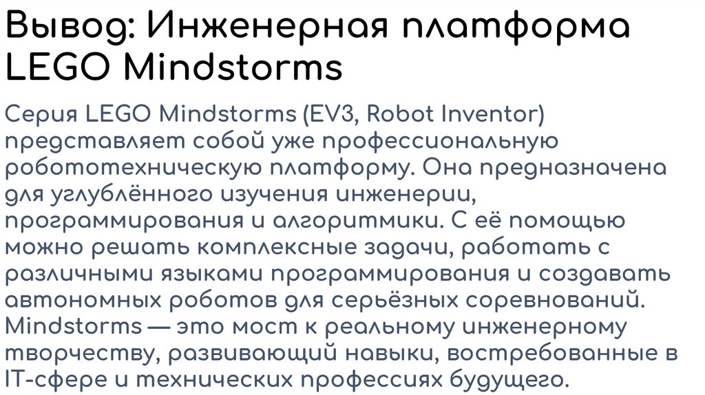 Вывод: Инженерная платформаLEGO Mindstorms