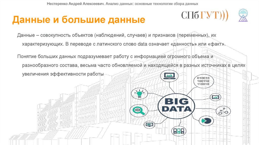 Нестеренко Андрей Алексеевич. Анализ данных: основные технологии сбора данныхДанные и большие данные