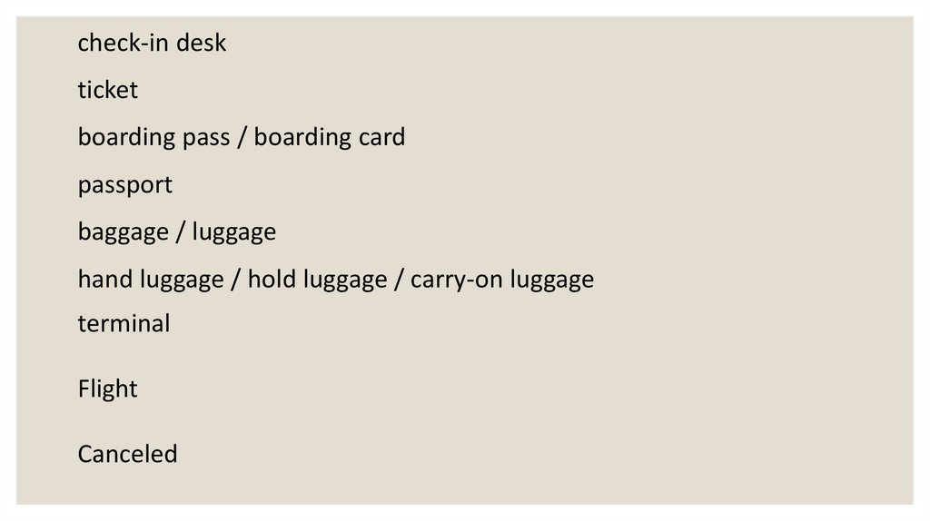 hand luggage / hold luggage / carry-on luggage