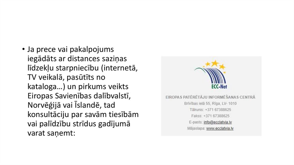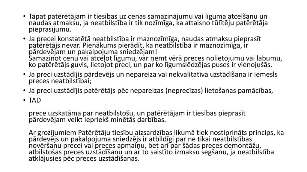 • Patērētājam ir tiesības iegādāties līguma noteikumiem atbilstošas